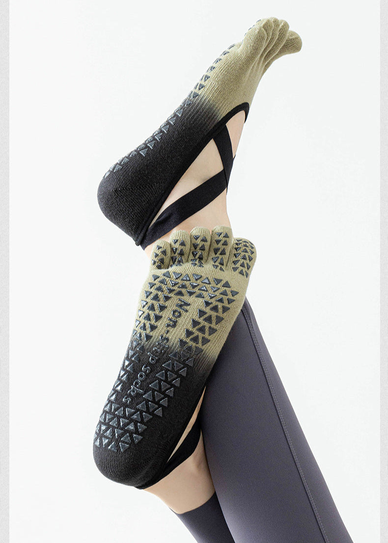 • Anti-slip silicone grips: On the sole, to prevent slipping and provide stability on yoga mats or any surface